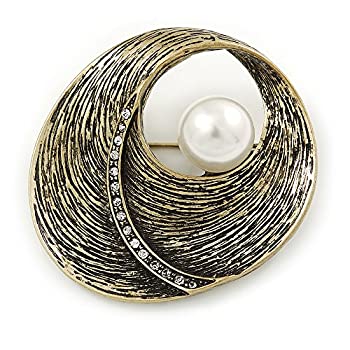 【中古】【輸入品・未使用未開封】Vintage Inspired Textured、クリスタル' Shell ' withパールブローチアンティークゴールドのメタル???45?mm L